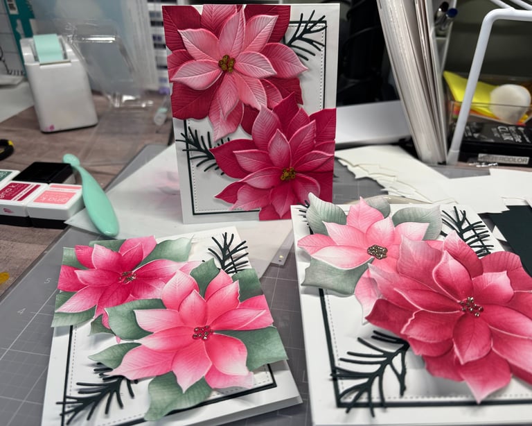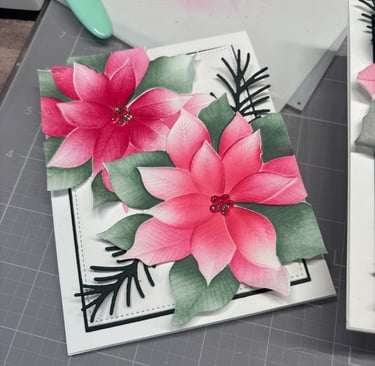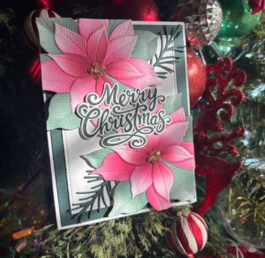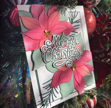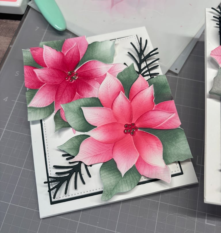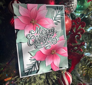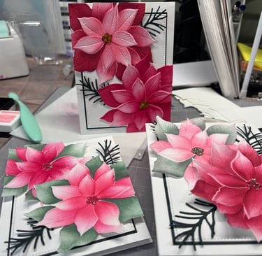 These beautiful cards were made using the Grand Poinsettia embossing folder, die and coloring stencils. This was a colab with Gina K designs and Simon Says Stamp. Unfortunately these are not available for purchase. You can view that free class on SSS youtube channel. Here is the link.
